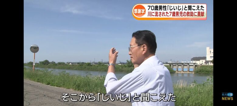 川に流された7歳男児を70歳男性が「じいじ!」の声で発見し通報。7分後に無事救助され、命に別状なし。