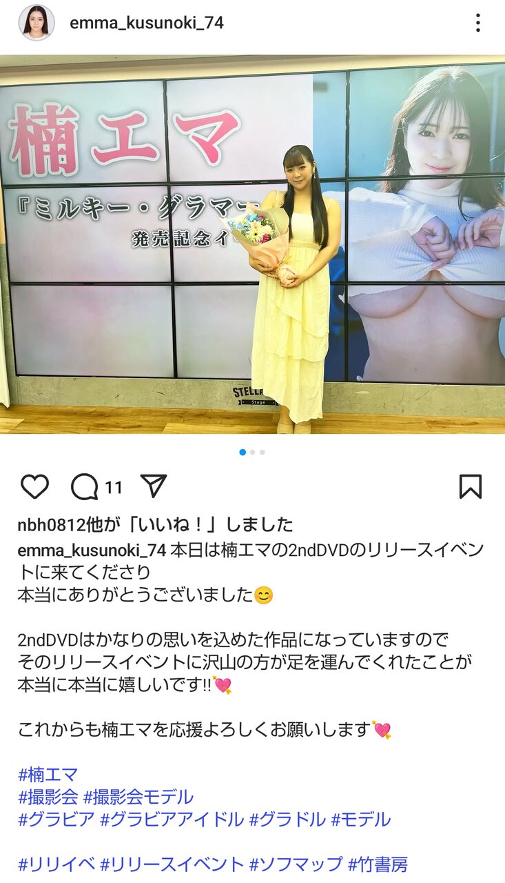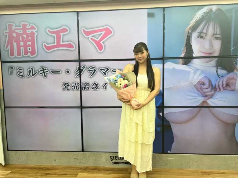 B105・H101の楠エマがソフマップイベントに登場。力士の乳首を当てる特技も披露し、ネット民がザワつく!