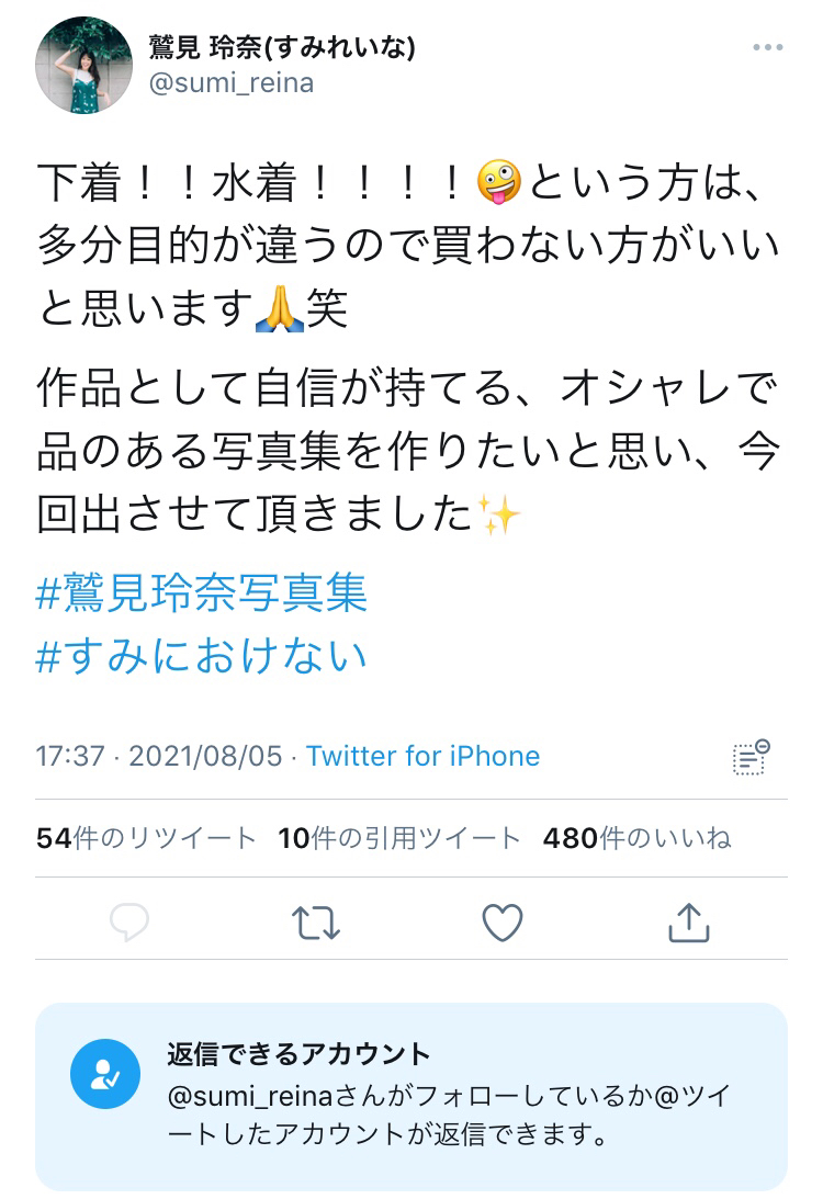 鷲見「水着や下着目当ての人は買わない方がいいかと…私の写真集はおしゃれ路線なので…」