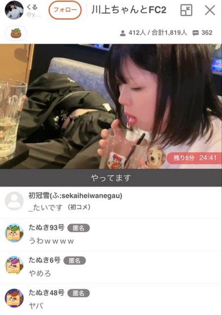 ふわっち配信者がカラオケ店で放尿→飲尿→嘔吐をライブ配信し炎上。顔バレ・特定が進み、ラウワンは法的対応へ。