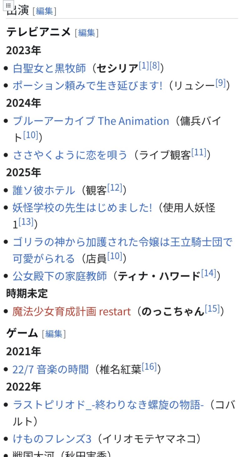 羽ばたけ!アーリーウィング学園 澤田姫のメゾン・ド・ブルーム 2024年 澤田姫の「幸せ」おかわり無料です! 声優e-sports部 2025年 澤田姫のゆるくちゃダメですか? [脚注の使い方] ^ a b c “夏アニメ『白聖女と黒牧師』放送直前!声優・澤田 姫(セシリア役)インタビュー”. アニメイトタイムズ… |