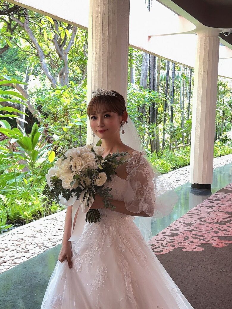 4月に一般男性との結婚を発表した中川は「ハワイで結婚式でした」とファンに報告。