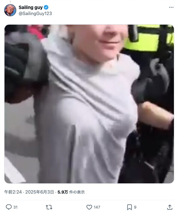 グレタさんと思しき巨乳少女が、警察に連行される動画が話題に。表情がなぜか恍惚でネット民ざわつく。