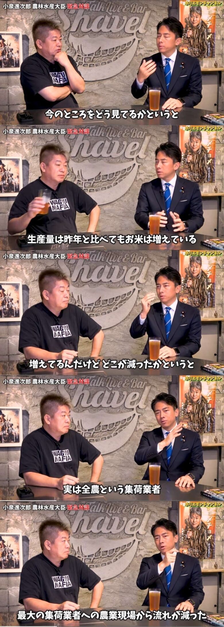 小泉進次郎がホリエモンチャンネルに出演し、米価格高騰の背景を暴露。ネットでは「出るとこ間違ってる」の声も。