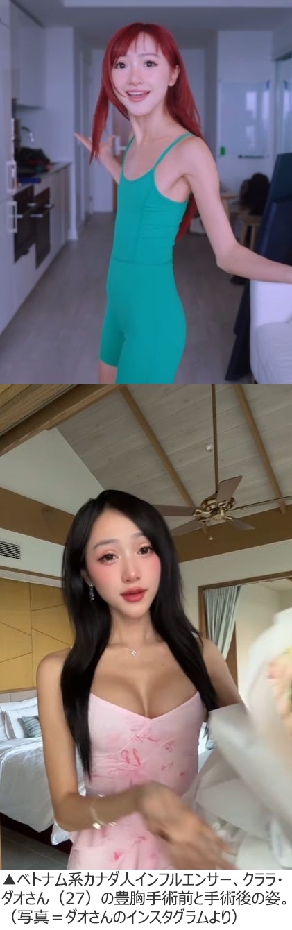 「平たい胸」アピールで人気のカナダ人女性インフルエンサー(27)が豊胸手術、ファンから非難殺到