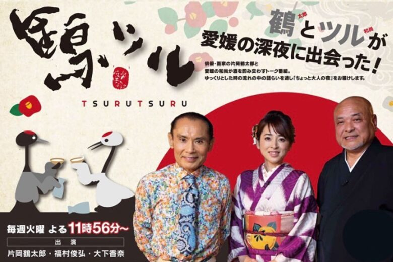 >俳優・画家の片岡鶴太郎と愛媛のお坊さんが酒を酌み交わすトーク番組。
