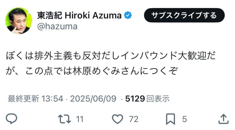 東浩紀さんの雑談動画を見たけど自分と興味の方向性が似てる人だなと思った
