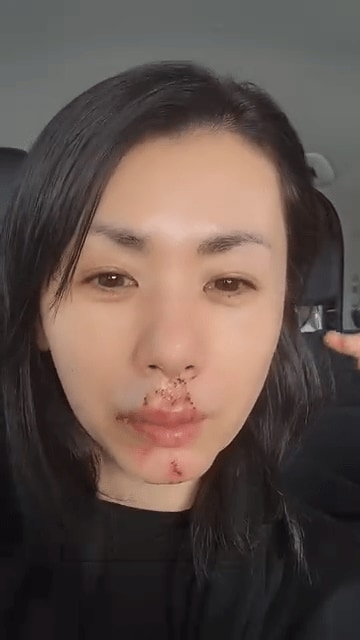 顔面を犬に噛まれたことを明かし、痛々しい傷跡が残る動画を公開しました。