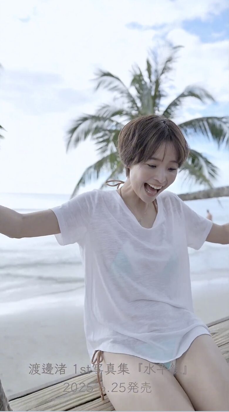 渡邊渚が初写真集を水着×白T姿で告知。タイのビーチで“透け感”満載の映像にSNS騒然、発売は6月25日。