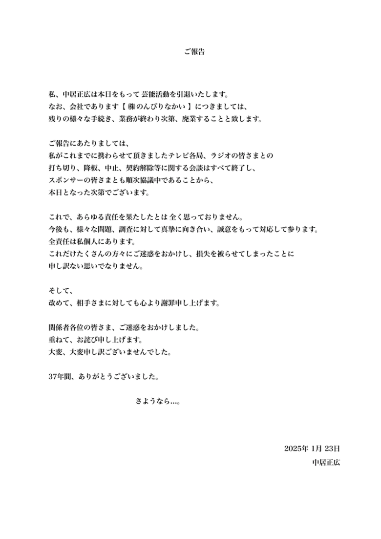 TOKIO解散と国分太一の引退を「紙ペラ1枚で幕引き」と批判の声。責任ある立場の人間として疑問視される。