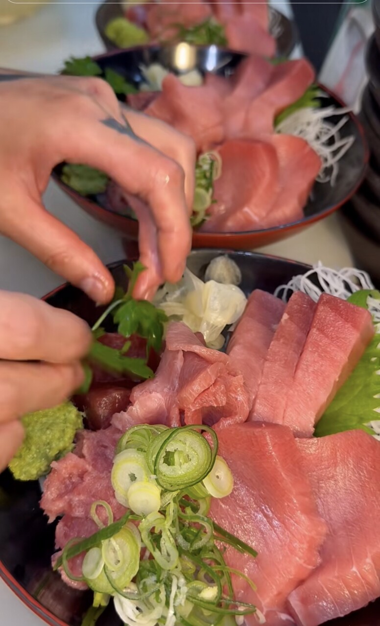タトゥーの入った女性が作る海鮮丼がネットで話題に。「見た目は派手でも味は本物」と賛否両論の声が集まる。