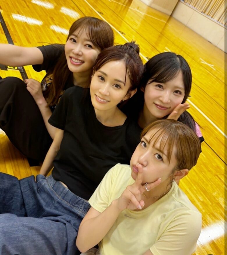 前田は「みんなで踊っててキュンってした」と、気の置けないメンバーとの時間を楽しんだようで、2枚目の写真では笑顔。最後には、現役のAKB48メンバー・小栗有以も加わった1枚も紹介した。