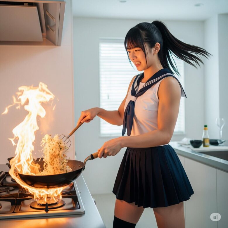キッチンが低すぎるのかJKの脚が長すぎるのか