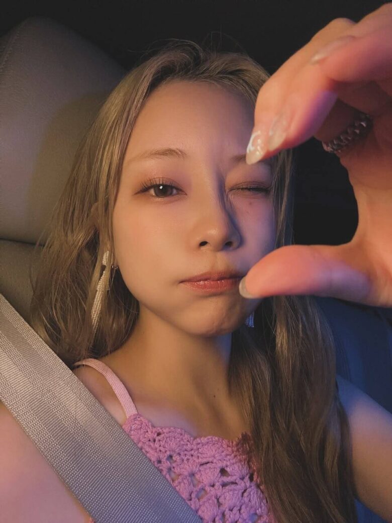 ▼キャラ激変!「雰囲気違う」ピンクキャミショット