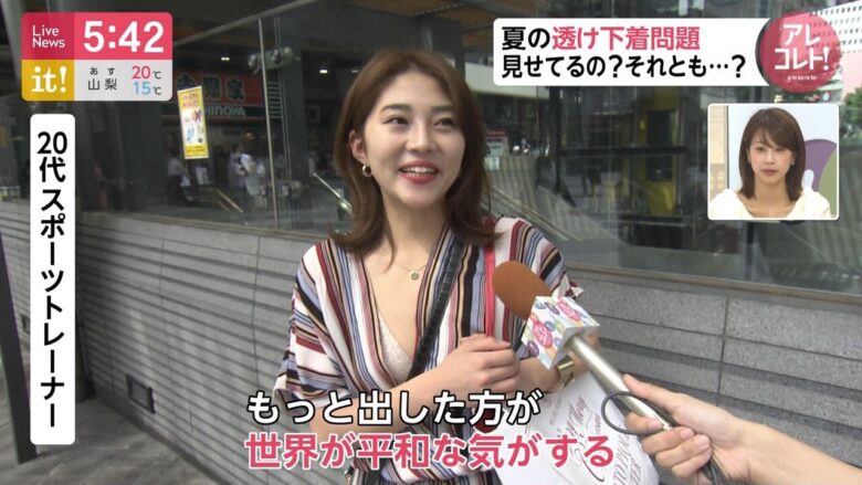 街中にブラトップだけで現れた女性が話題に。「ノーベル平和賞」などの賞賛コメントが続出し、ネットがざわつく。