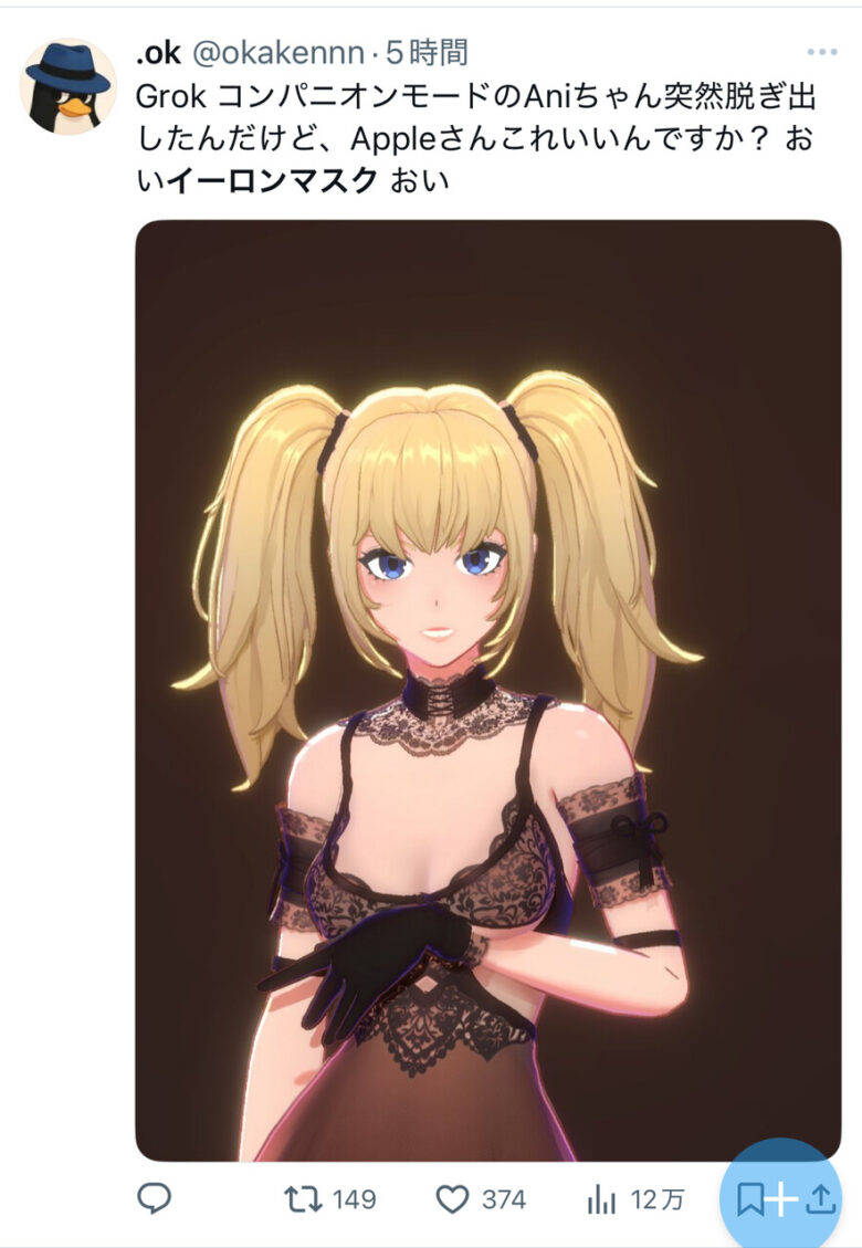 金髪ツインテ美少女と会話できる「Grok」の新機能にネット騒然!好感度で下着姿にも?“新時代のギャルゲー”誕生