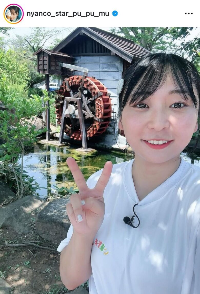 アンゴラ村長が水車小屋の前で「今日暑すぎる!」と投稿。場所当てクイズとともに猛暑への注意を呼びかけた。