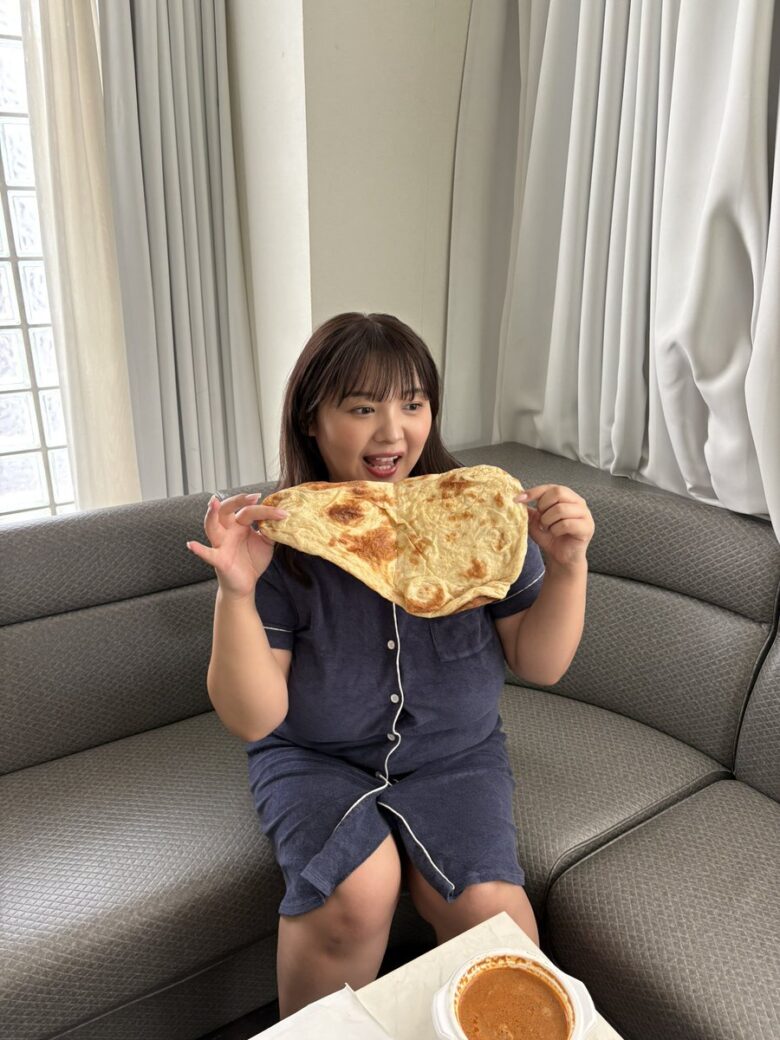 爆乳グラドルが、自身のバストより巨大なナンを食す衝撃写真が話題に!ネット民のツッコミが炸裂中!