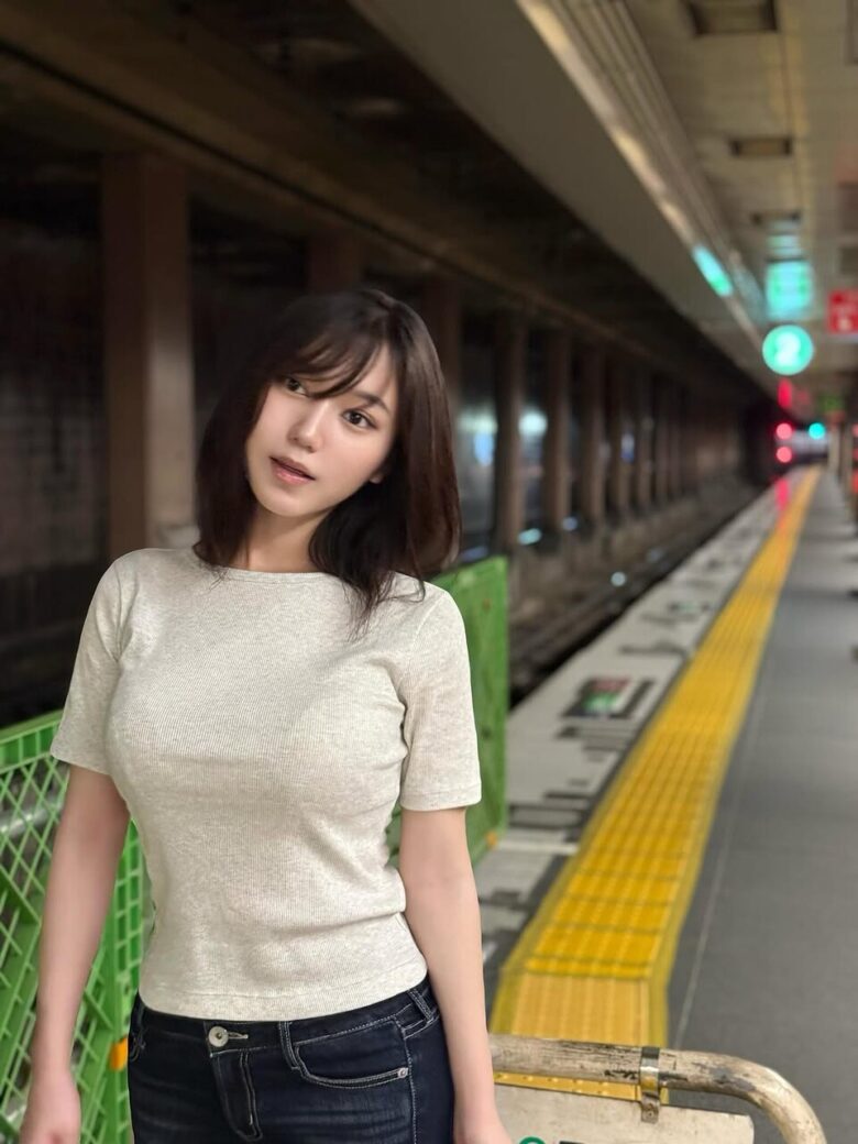 地方駅で撮られた巨乳美女が「AIかリアルか」で話題に!胸の形が( = )でネット騒然!