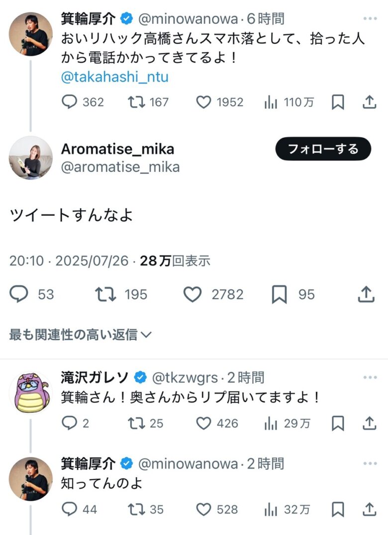 箕輪厚介の不倫が発覚し、妻がXで怒りの連投。美人すぎる妻の投稿が話題となりネット民騒然。