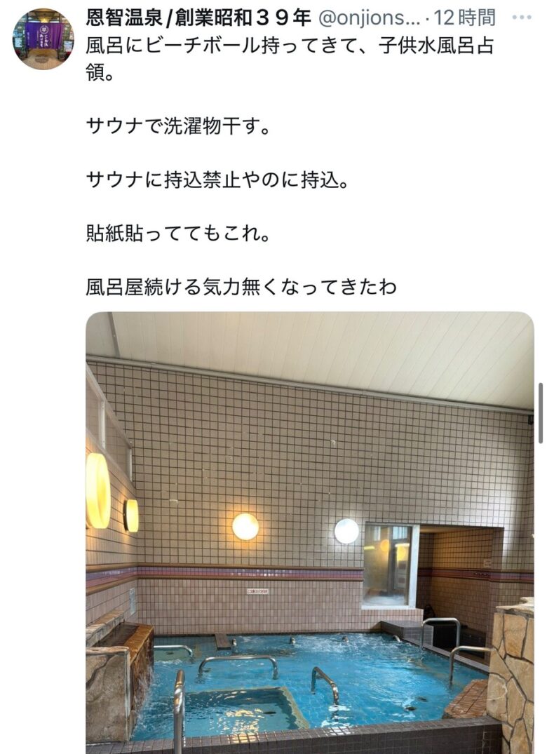 女性専用サウナがマナー違反者の迷惑行為により休業に追い込まれる。騒音や場所取りが深刻化。