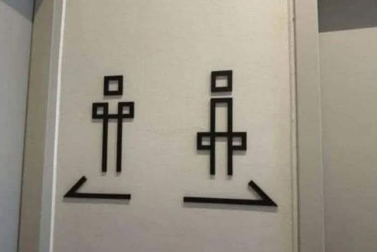 おしゃれビルのうっすいグレーの壁に白のピクトグラムきらい