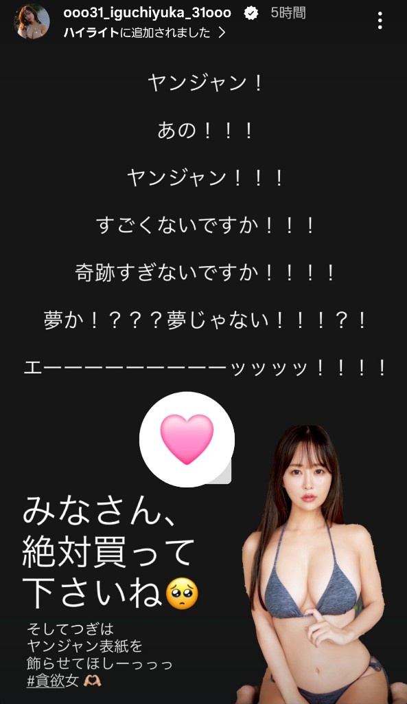 ヤンジャンのグラビアをめちゃくちゃ喜んでる井口さん🥰