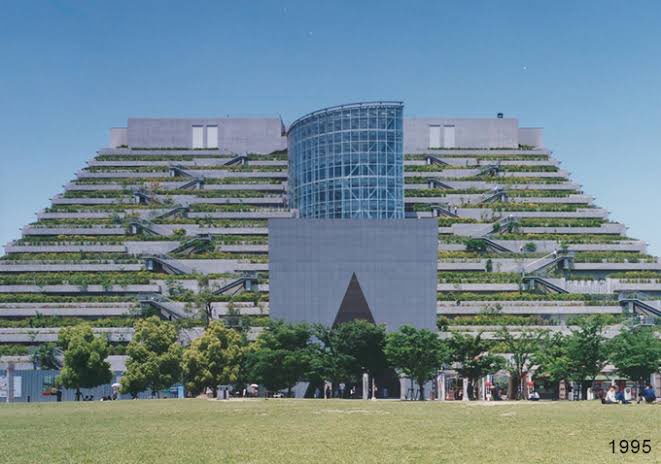 ビルの2階から14階までの天井部分に木が植えられている。いわゆる屋上緑化だ。