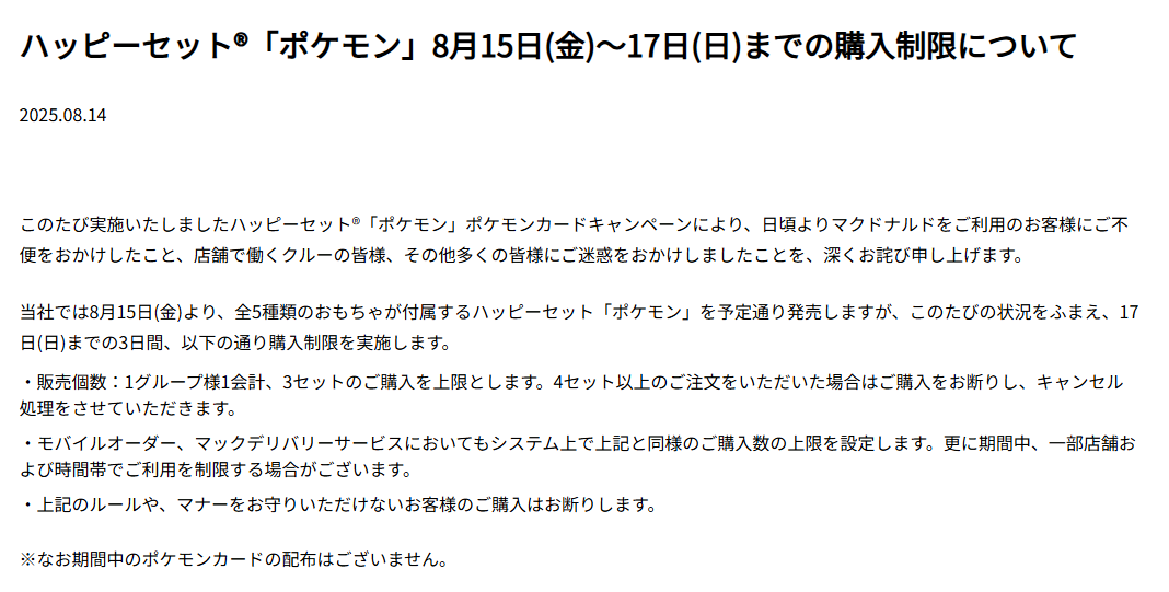 年内はポケモンコラボ以外のハッピーセットにもカードつけますが正しい