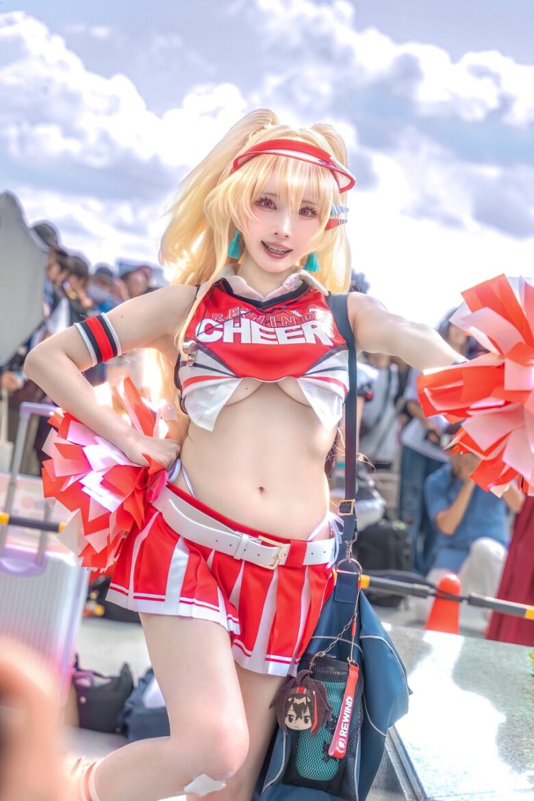 伊織もえがC106で披露したコスプレを「下乳部分も衣装」と解説。露出工夫や日焼け跡報告にファン歓喜。