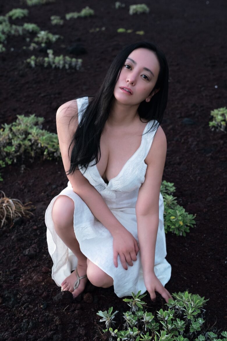 脊山はノースリーブにで太ももやヒップが透けるシースルーのロングドレス姿で登場。「3年ぶり7冊目の写真集ということで、地元の東京でも発売イベントができて、うれしいです」と喜んだ。「八丈島で撮影してきた『東京33度』で着た衣装を着てきました」と作品内で着た衣装であることも紹介し「アナウンサーとして20周年、グラビアとして10周年、いろいろな顔をもつ私の素顔を楽しんで頂けたらうれしいです」と呼びかけた。
