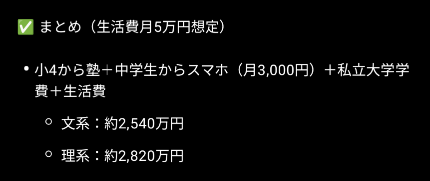 大学まで行かせると2300万円くらいだけど一戸建てやファミリーマンション用意しないと駄目だから実際はもっとお金かかってる