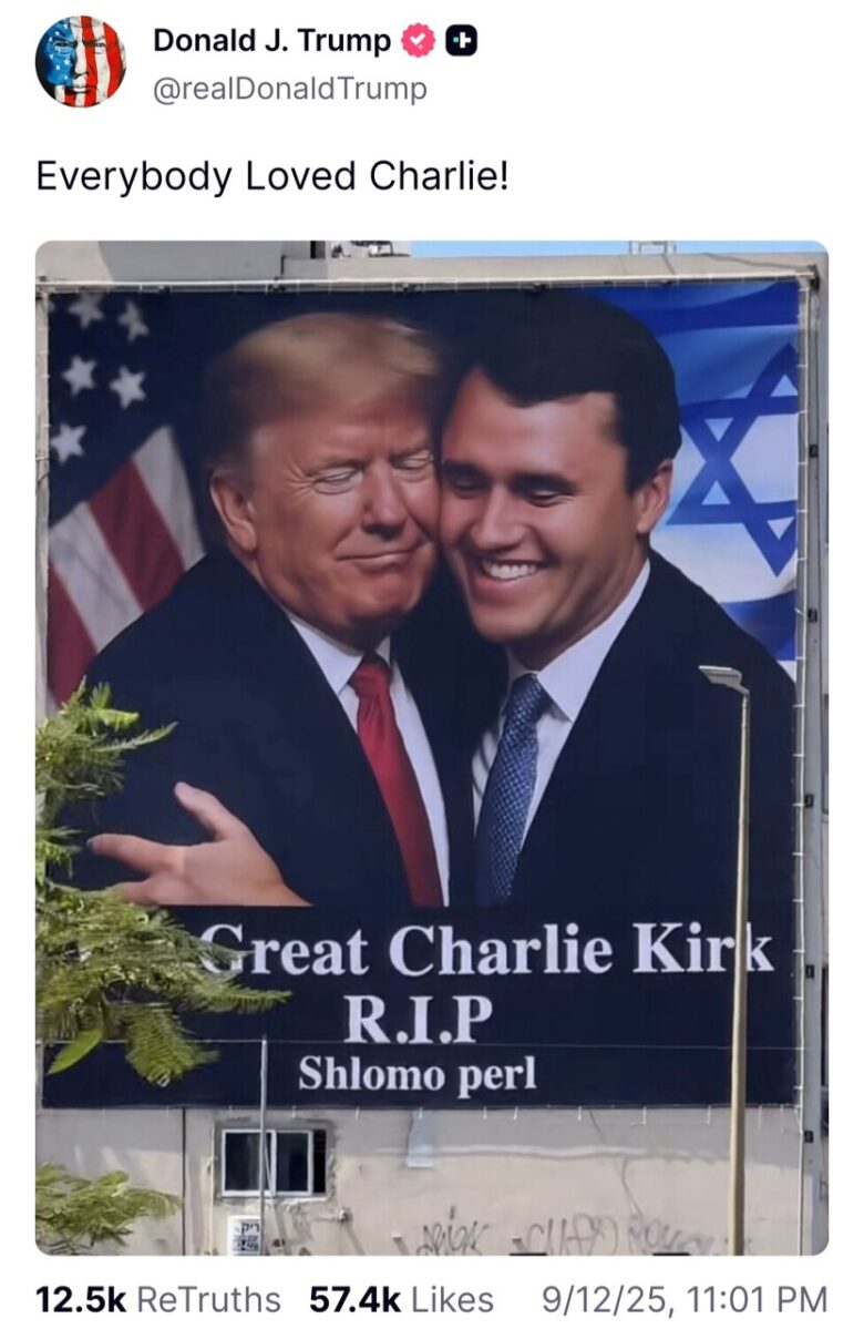 トランプ「ありがとうイスラエル。ありがとうチャーリー・カーク」