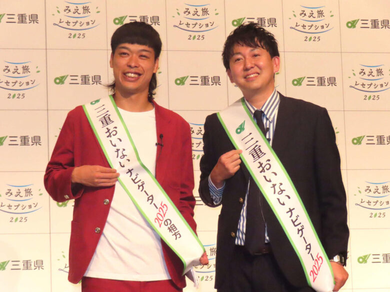お笑いコンビ、バッテリィズが18日、都内で行われた「みえ旅レセプション2025」に登壇した。