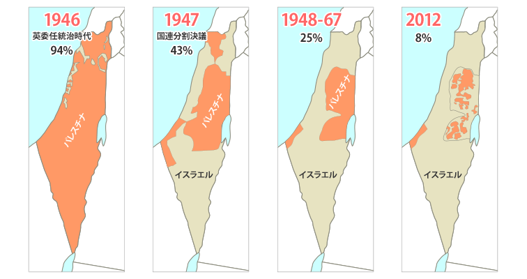 ハマスがガザ地区を実効支配(パレスチナ暫定自治政府からはほぼ独立状態)