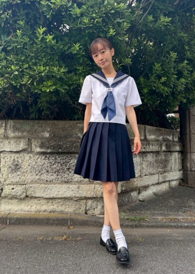 この投稿に女優の吉岡里帆が反応。「かわい~です!!」とコメント。フォロワーからは「違和感なし」「すごいスタイル」「めっちゃ似合ってる」「JK優勝」などの声が寄せられた。