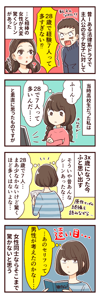 男が考えてたら主人公ヒロインに経験人数とか語らせないだろ