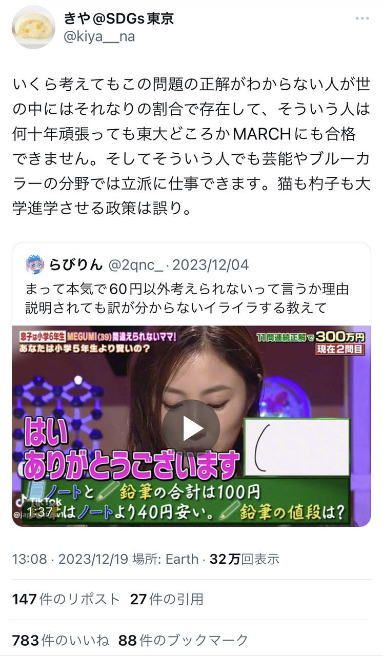 唯一とか言っちゃうのが勉強できても頭悪い典型