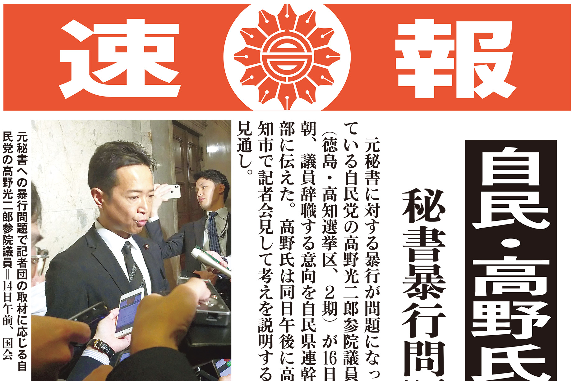 @folder_10940秘書殴った自民の高野光二郎・参院議員、地元高知で辞職表明「取り返しのつかないことをした」(読売新聞オンライン) - Yahoo!ニュース news.yahoo.co.jp/articles/d7a71…