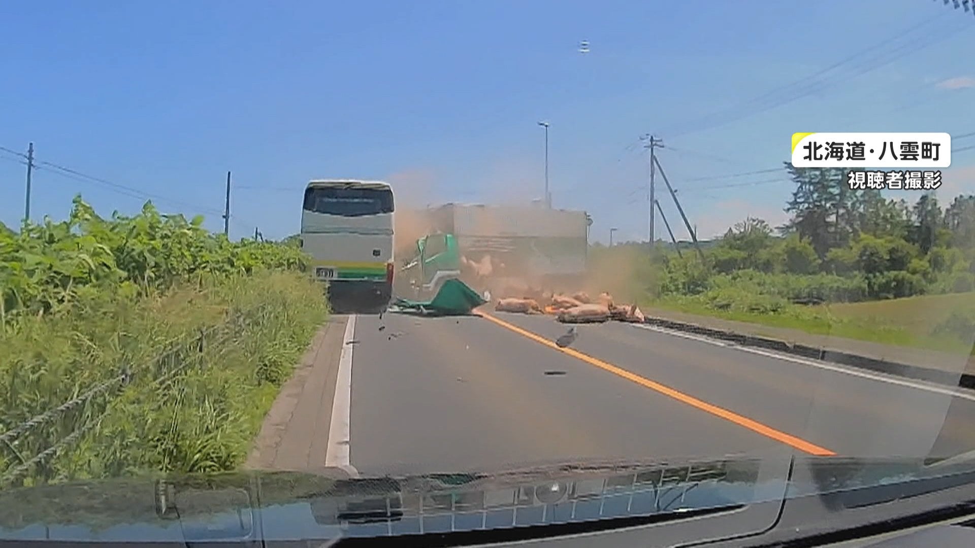 @nemo9691106路上に転がる🐷が痛々しい(´・_・`) 北海道でバス事故、2人心肺停止 トラックと衝突、八雲の国道5号 (共同通信) u.lin.ee/601V0tu?mediad…