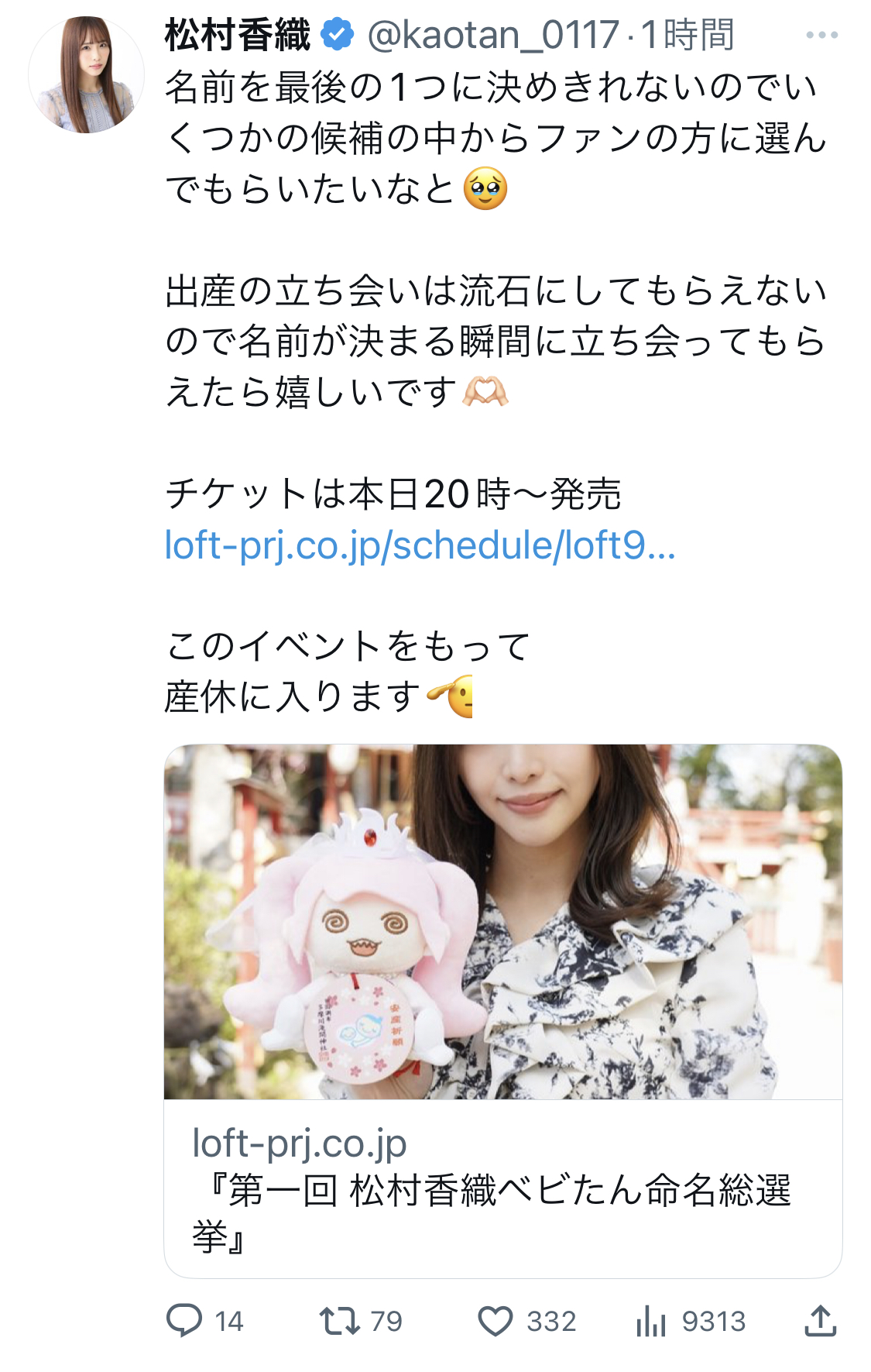 @itm_nlabentaおめでとうございます! 元SKE48・松村香織、第1子女児を出産 赤ちゃんの名前は“異例のファン投票”で命名済み nlab.itmedia.co.jp/nl/articles/23… pic.twitter.com/bpSWHB88hN