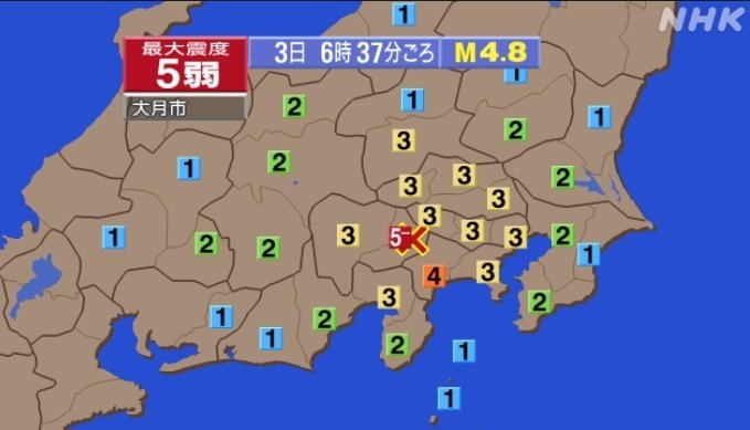 @tvknews93026日午後7時3分頃、千葉県東方沖を震源とする最大震度5弱の地震がありました。 神奈川県内では最大震度3で、一部地域では、大きく長く揺れる「長周期地震動」の階級1を6分間観測しています。 #tvkニュース news.yahoo.co.jp/articles/e1692…