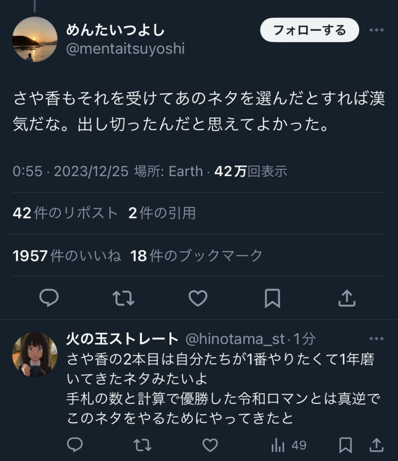 短時間ベロベロ同い年同期との写真添え pic.twitter.com/jFNABsHa0W— さや香 石井 (@sayaka_ishii) December 24, 2023