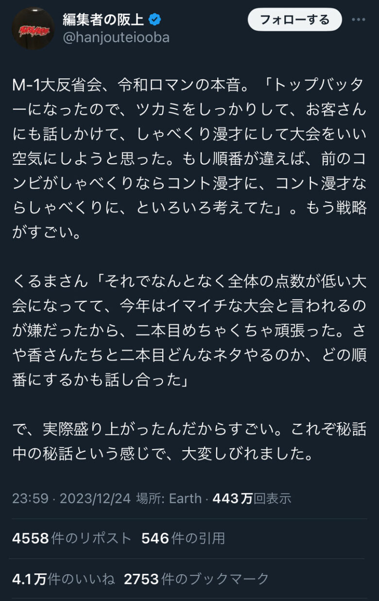 皆様長時間M-1お疲れ様でした!