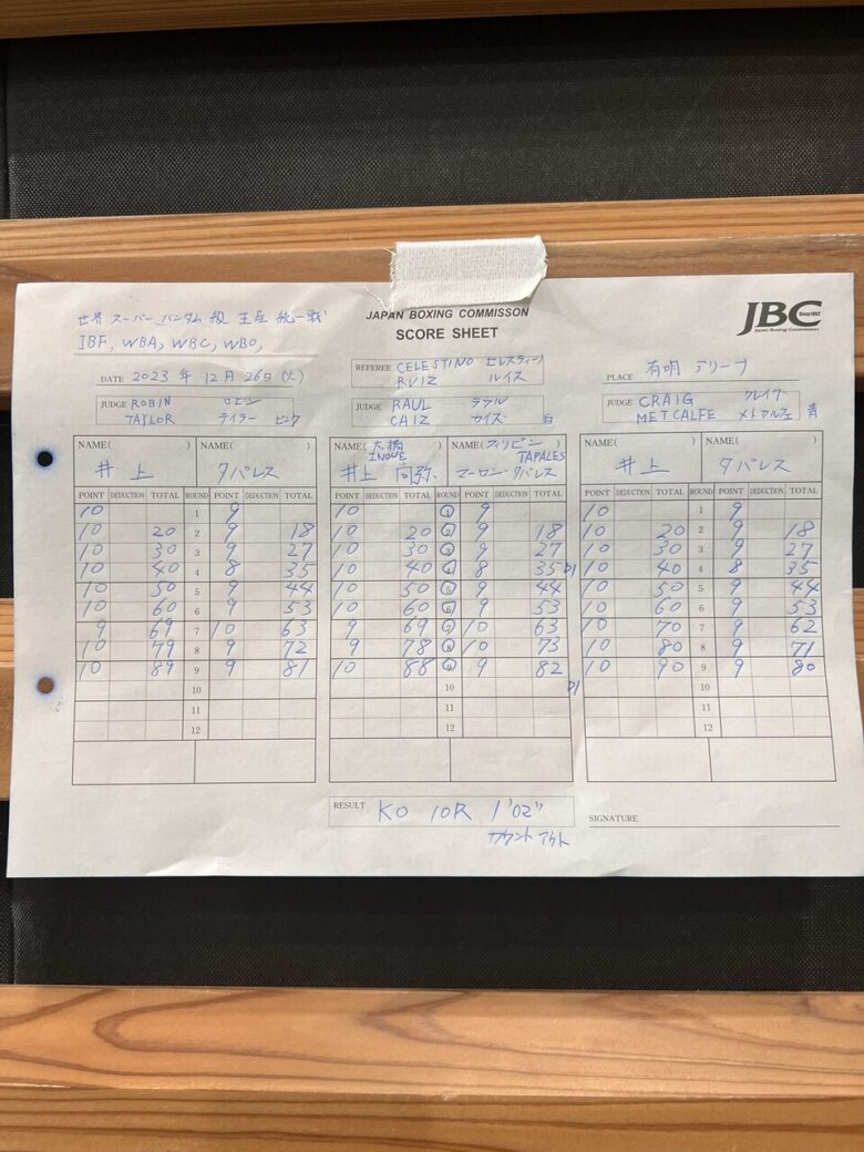 井上のパンチ力は余裕でフェザー以上はありそう、よく頑張ったタパレスは明日顔ボコボコだろうね