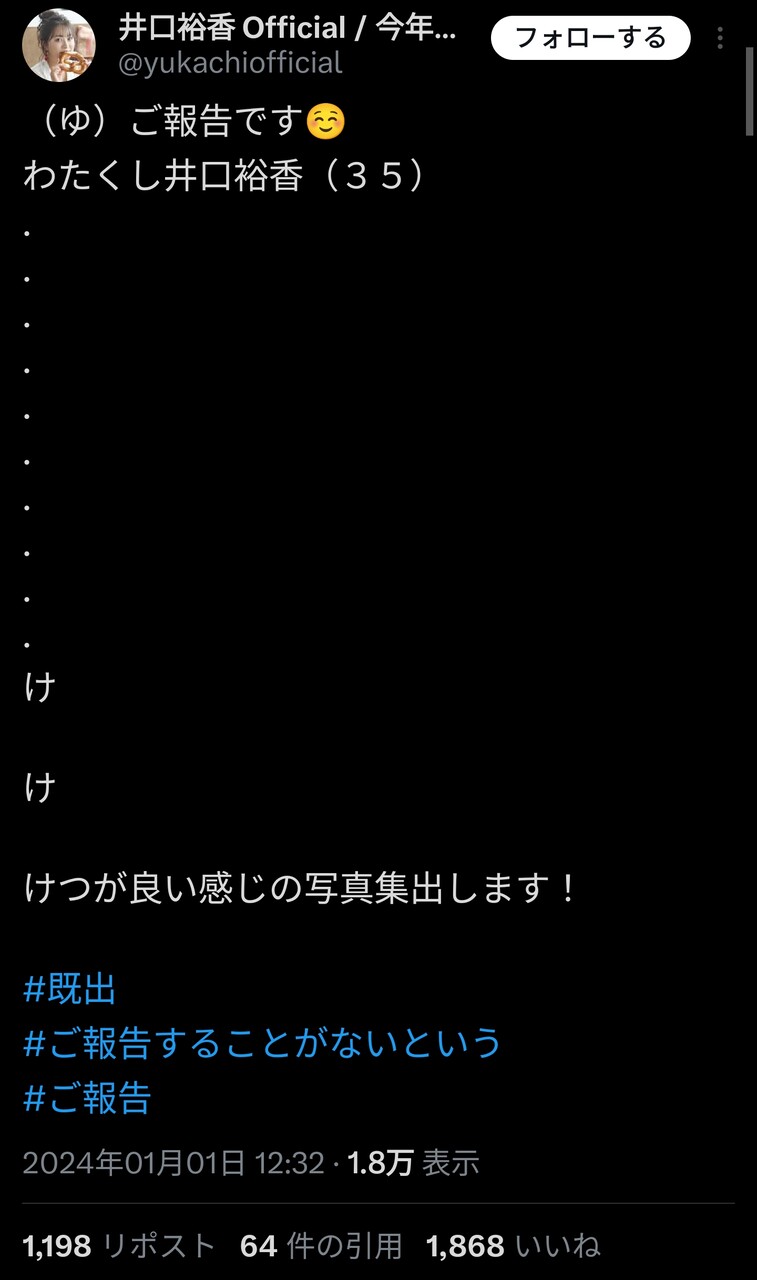 — 井口裕香 Official / 今年の夏は2ndミニアルバム💛 (@yukachiofficial) January 1, 2024
