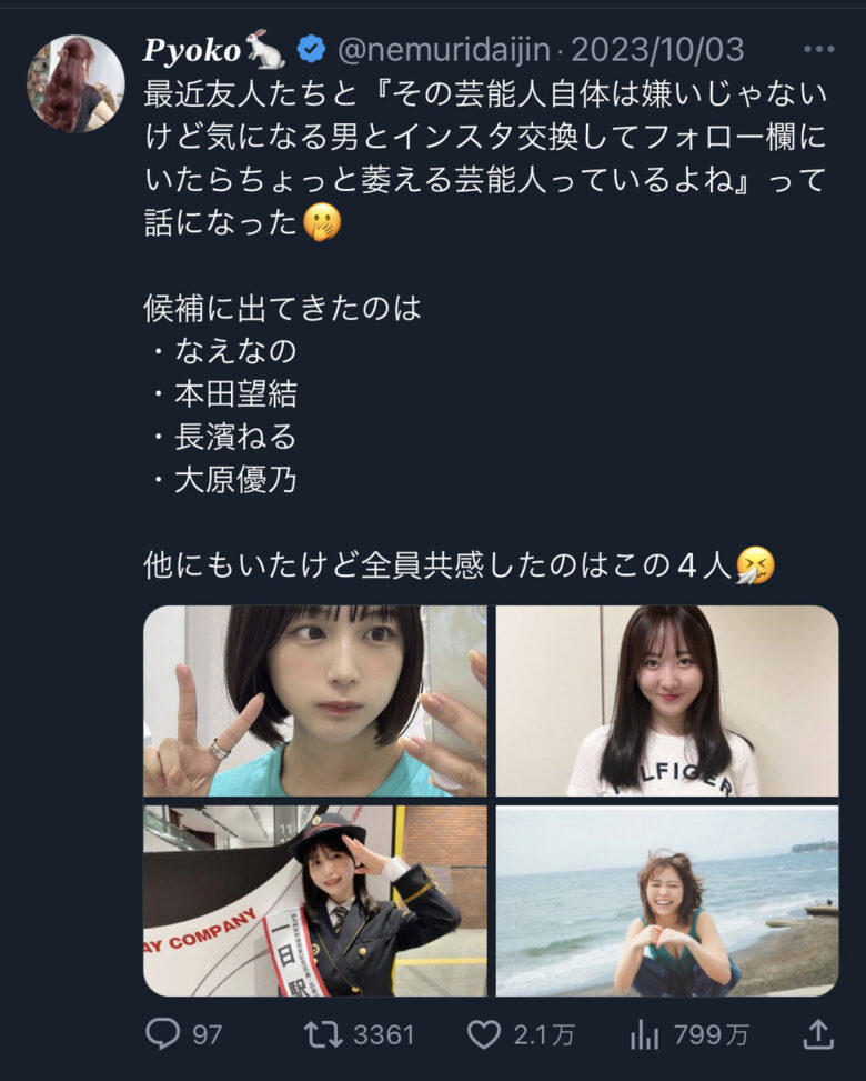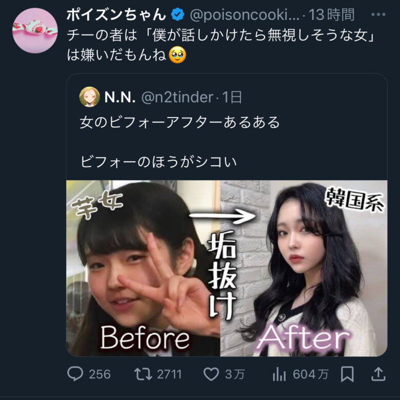 チーの者は「僕が話しかけたら無視しそうな女」は嫌いだもんね🥹 https://t.co/hiHC2FEQ63
