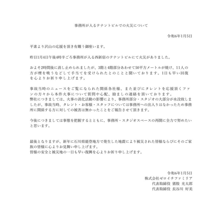 ゼロイチファミリア事務所兼スタジオ水没のお知らせ