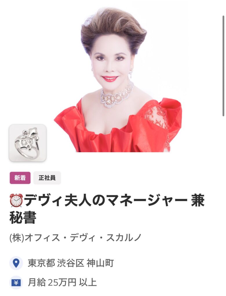 月給25万円、またデヴィ夫人の直面接があると話題になっている。