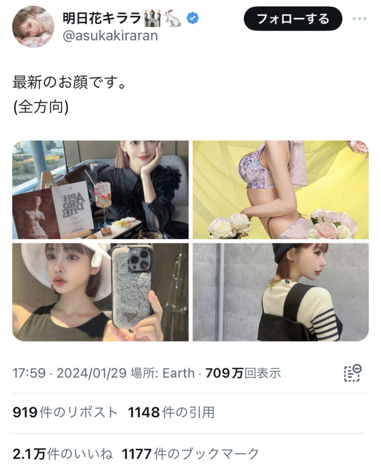 (全方向) pic.twitter.com/7dzRHHEcCE— 明日花キララ🏰🐇 (@asukakiraran) January 29, 2024